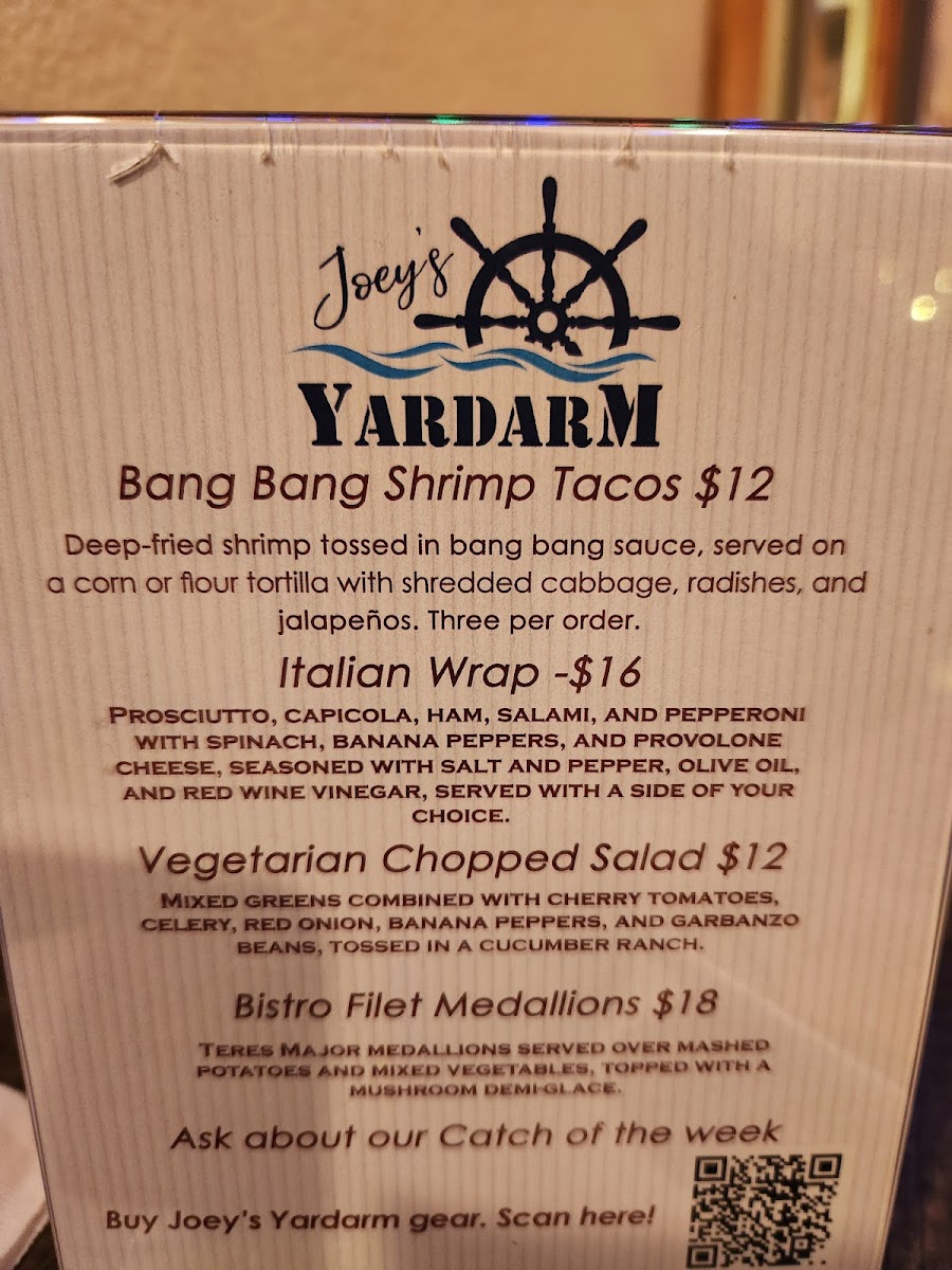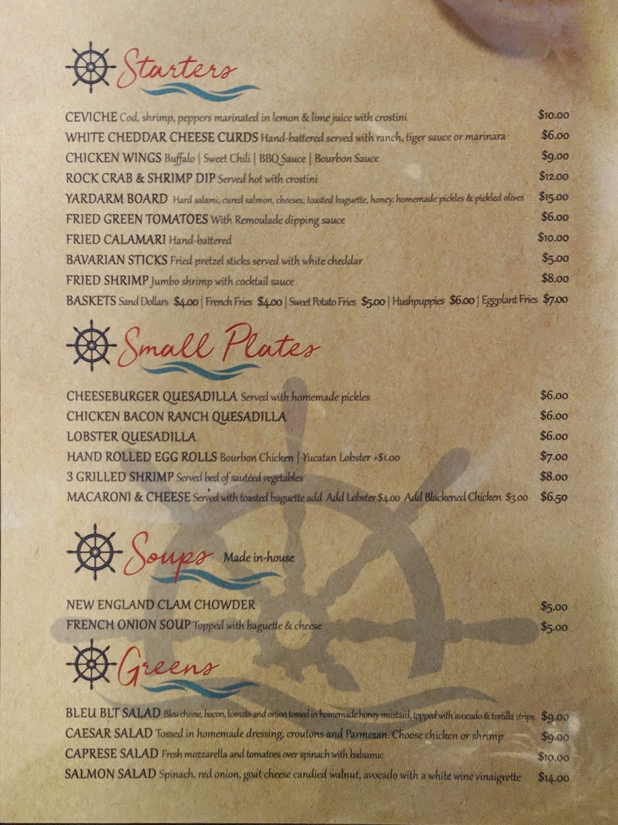 Welcome to Joey's Yardarm, a delightful dining experience located at 920 Erie St, Racine, WI, where the culinary offerings are as captivating as the nautical-themed ambiance. The menu features a range of delectable options that cater to various palates.